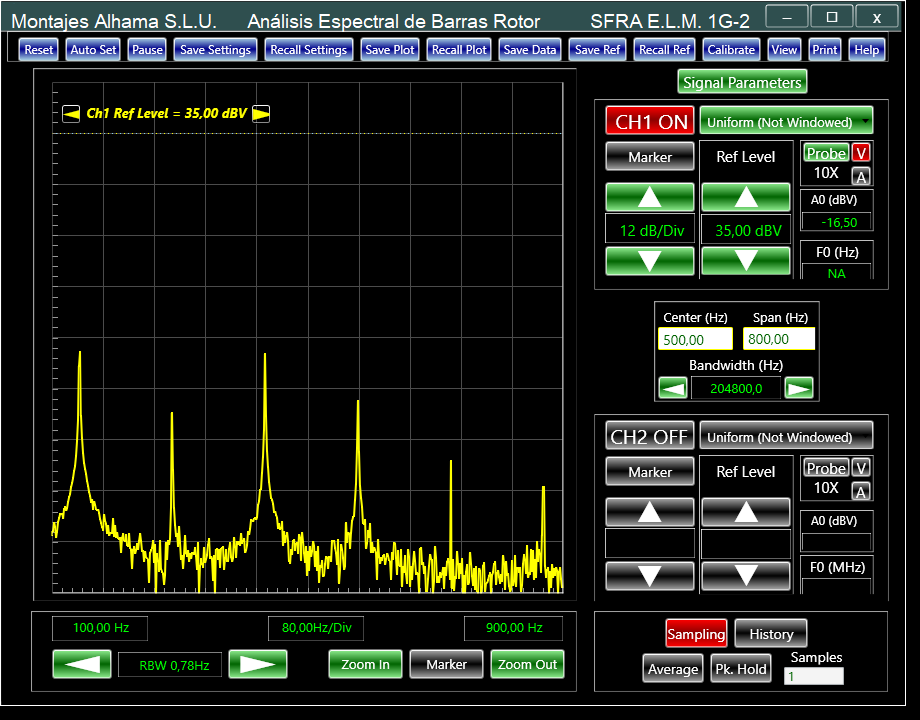 Ya que en el rotor de los motores eléctricos de elevada potencia es complicado averiguar la integridad de las barras de la jaula, y la calidad de sus soldaduras sin desmontar el motor, existe la posibilidad de averiguar la calidad de su estado, o el nivel de falla, o barras rotas, si fuese el caso, sin desmontar el motor, mediante análisis espectral dinámico, de corrientes y tensiones simultáneamente en las tres fases del devanado del motor, utilizando el analizador de SFRA modelo E.L.M. 1G-2, y la ayuda de sensores de corriente de alta frecuencia.