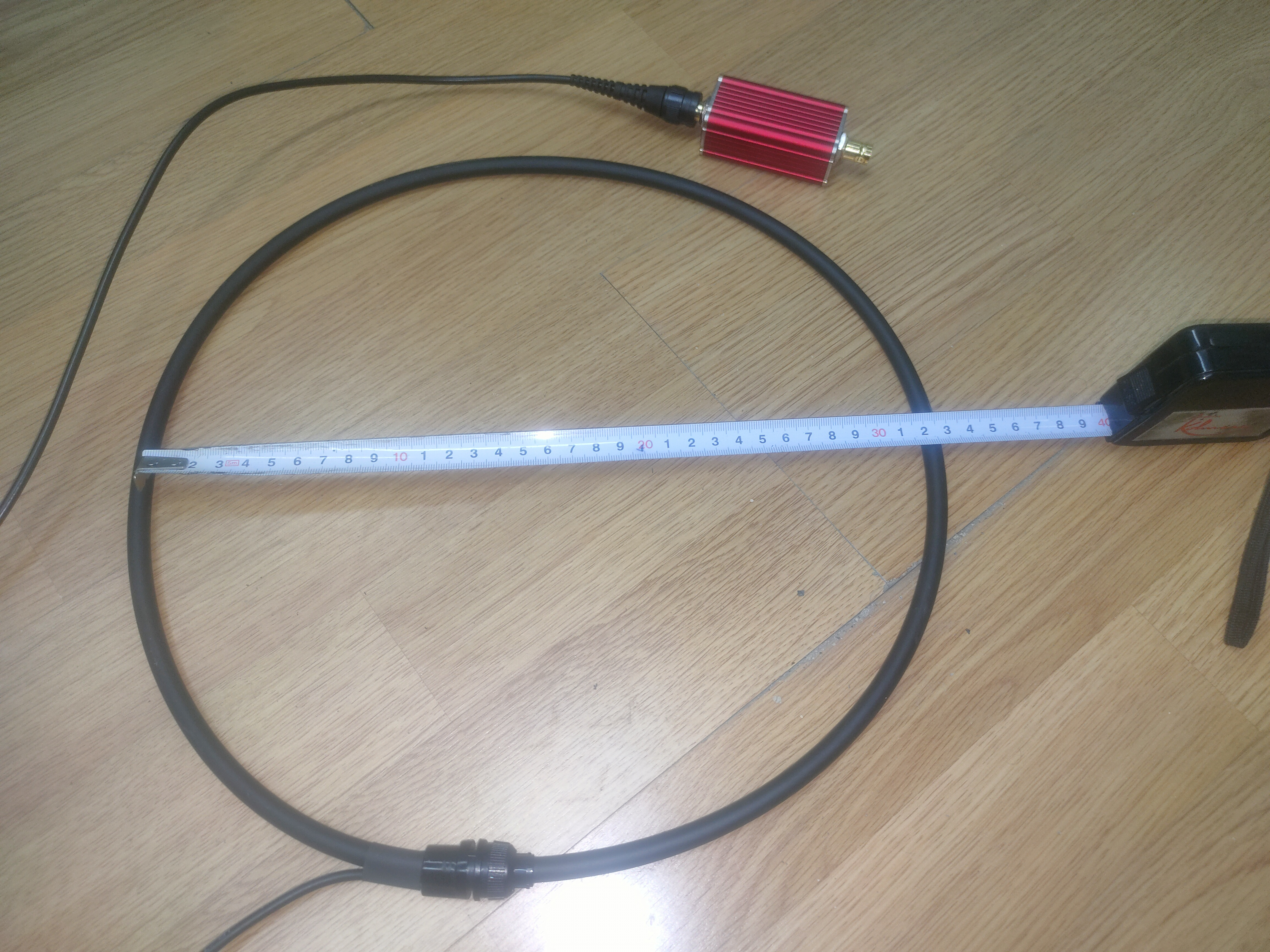 Imagen de sensor de corriente flexible especial para la medida de corrientes de fuga con sensibilidad de medida de 100 µA hasta 3.000 A, con diámetro de 320 mm, diseñado por Montajes Alhama S.L.U., para afrontar los retos de medida más inusuales en acometidas eléctricas de gran potencia con muchos conductores, la salida del apmlificador del sensor está conectada en serie a un filtro pasivo de paso bajo, igualmente diseñado por nuestra empresa para eliminación del ruido de Alta Frecuencia, y de los armónicos en las medidas de corriente residual.